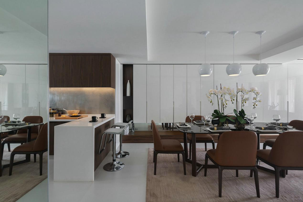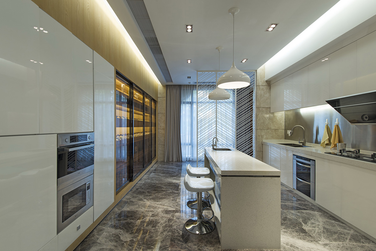飾面材質(zhì)的地柜和PET材質(zhì)的吊柜相結(jié)合,無(wú)不體現(xiàn)著精致生活。原木肌理與人性化細(xì)節(jié)的設(shè)計(jì)相輔相成。