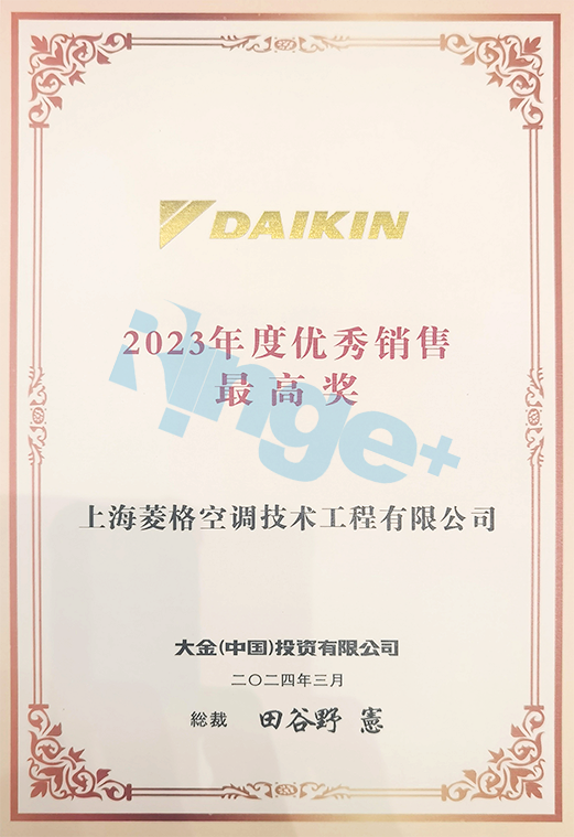 2022年度優(yōu)秀銷售最高獎 2023年度大金優(yōu)秀銷售最高獎