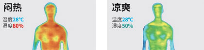人體感覺到的冷熱由溫度和濕度共同決定,濕度降低10%,相當于溫度降低1~2℃、溫度不變,將濕度降低,也能讓人感覺涼爽。當室內(nèi)空氣環(huán)境達到溫濕平衡時,人體會實現(xiàn)真正的舒適體感,而溫濕平衡的環(huán)境一般是溫度在22℃~28℃,濕度在40%~60%。