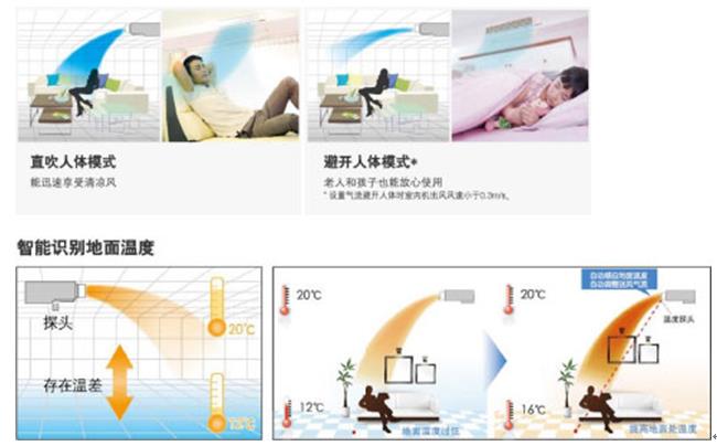 人體感應(yīng)智慧眼可以感知人體所在位置,結(jié)合3D氣流溫柔送風,根據(jù)個人需求可以設(shè)定直吹人體模式或避開人體模式,實現(xiàn)智能舒適。 另一個地面溫度感應(yīng)智慧眼,可以智能識別室內(nèi)地面附近的溫度,根據(jù)感知回饋自動調(diào)節(jié)室內(nèi)機的送風氣流的風量和角度,智能調(diào)控使室內(nèi)空間的溫度均勻。