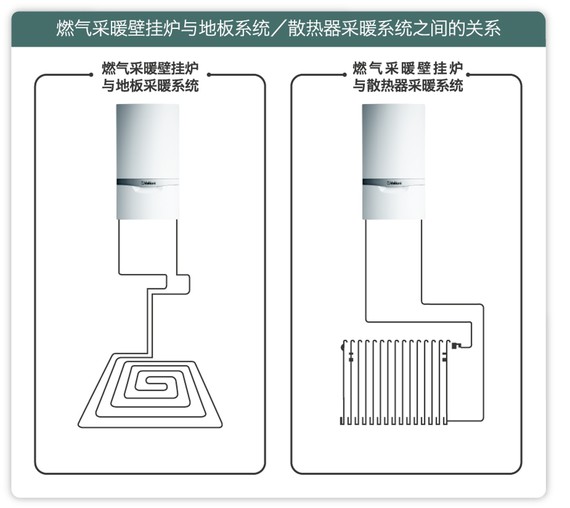 熱源為威能兩用爐或者單采暖爐,末端設(shè)備可選擇傳統(tǒng)的散熱器或地暖形式。熱源和末端之間通過控制系統(tǒng)和管路系統(tǒng)來連接,構(gòu)成地板采暖系統(tǒng)或散熱器采暖系統(tǒng)。熱水通過鍋爐這個(gè)熱源,在經(jīng)過輸送管道—分集水器—采暖末端—控制終端等,四者缺一不可,形成一個(gè)有機(jī)整體,從而提供源源不斷的舒適暖流。